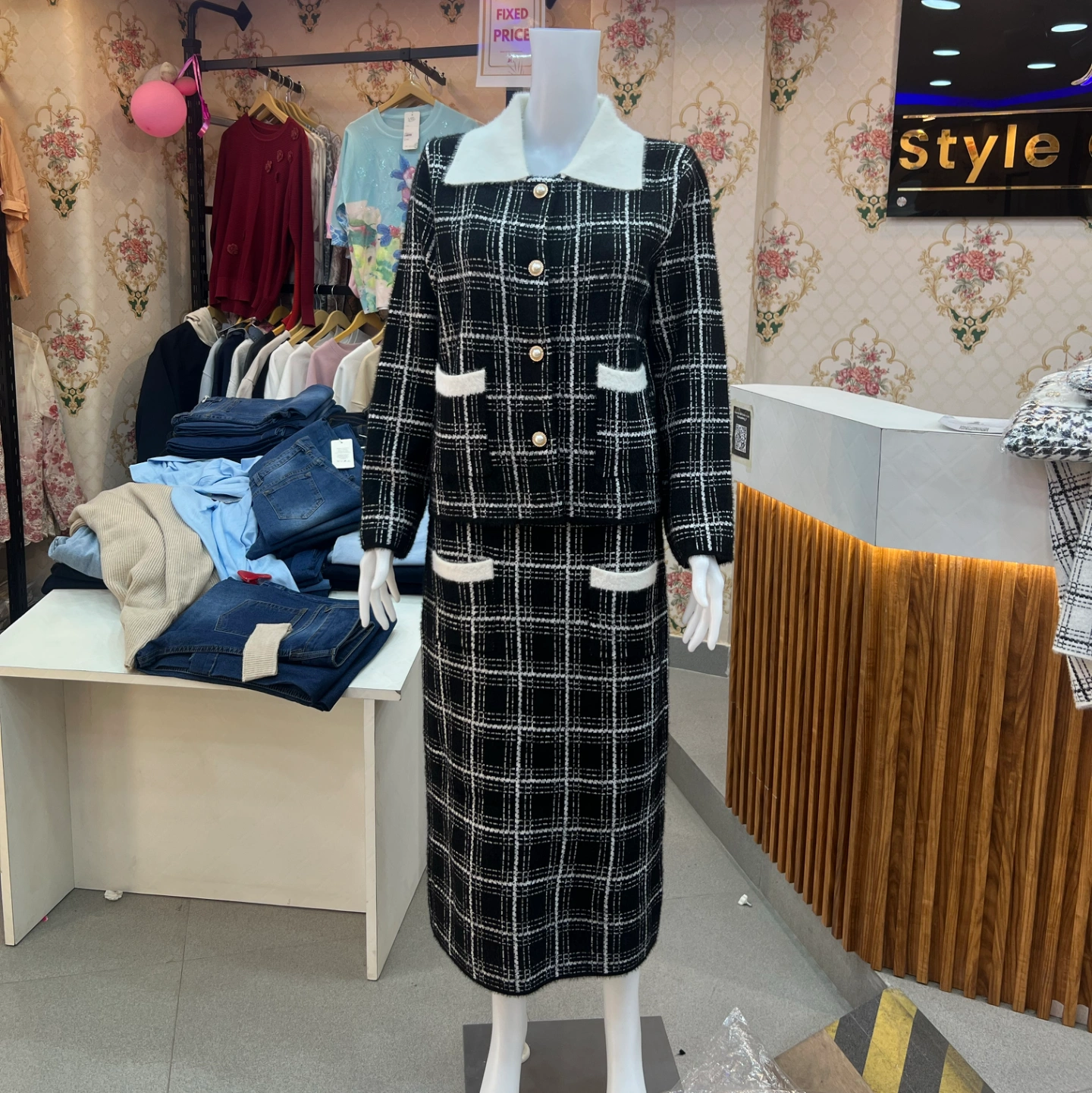 Make a bold and elegant statement this winter with our Houndstooth Woolen Co-Ord Set. Crafted from premium woolen fabric, this two-piece ensemble features a classic houndstooth pattern with a buttoned front jacket and matching midi skirt. The structured design and timeless monochrome palette bring sophistication to any formal or semi-formal occasion.