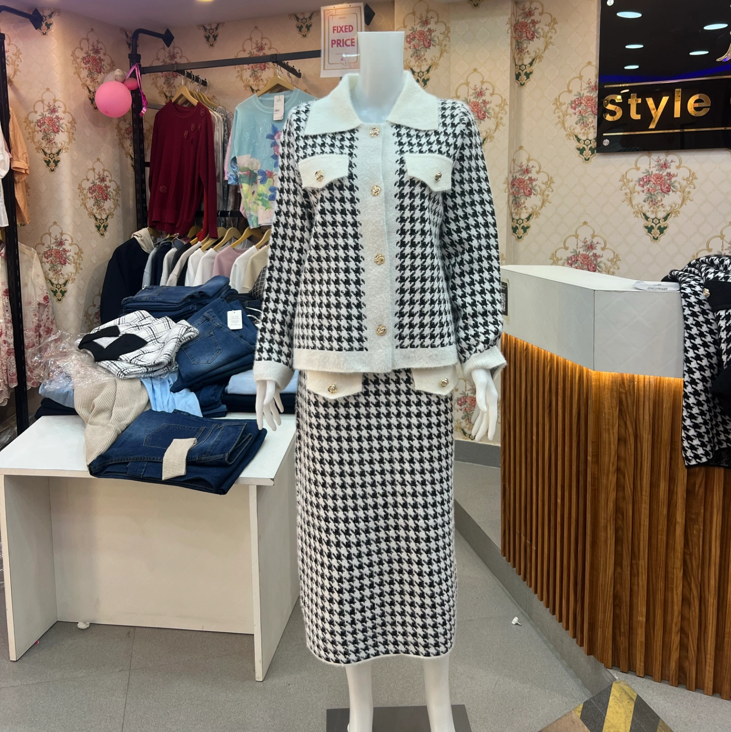 • Classic houndstooth pattern for a refined look