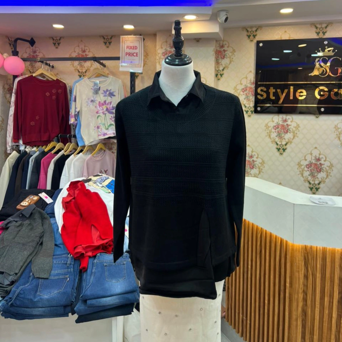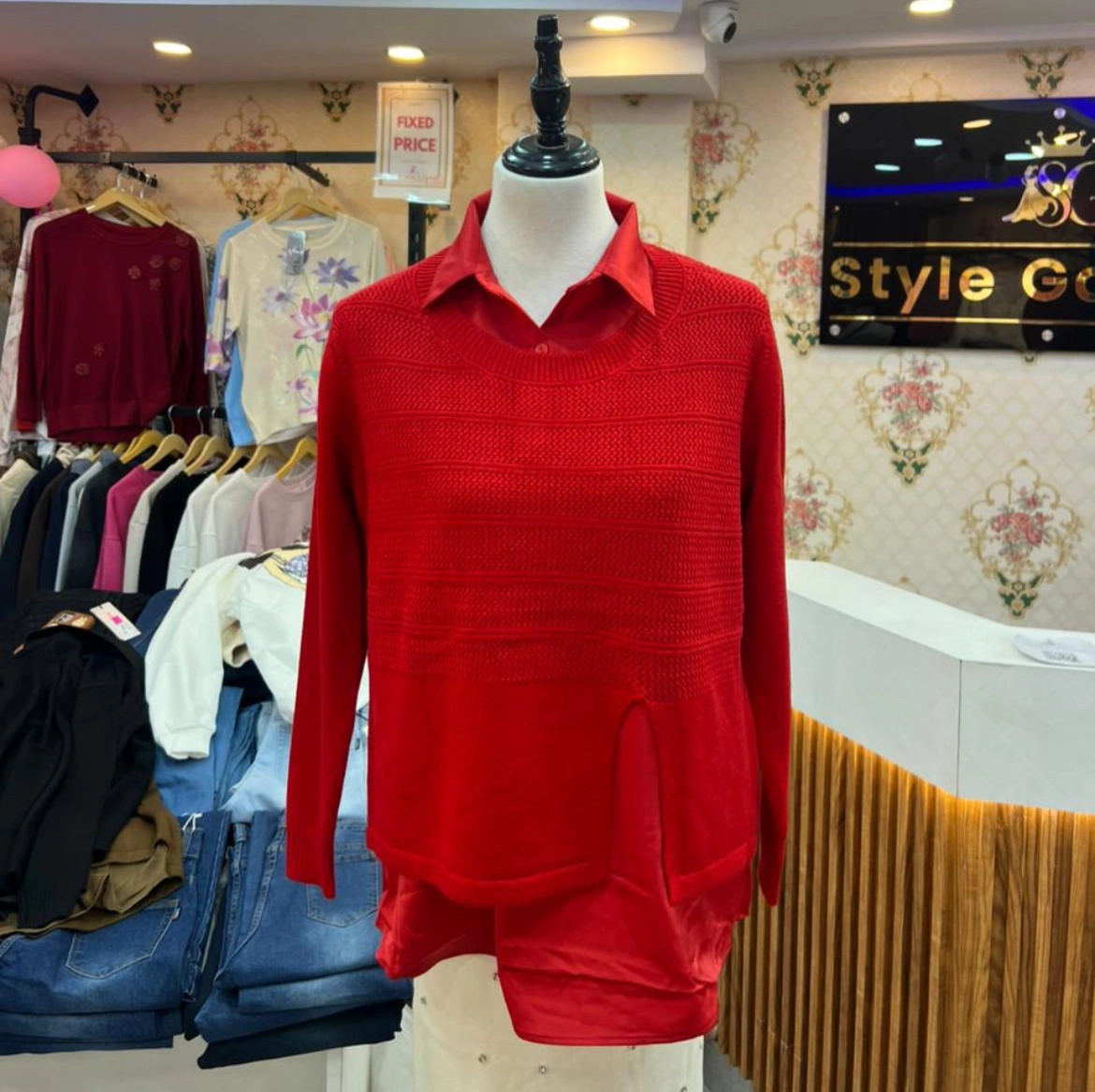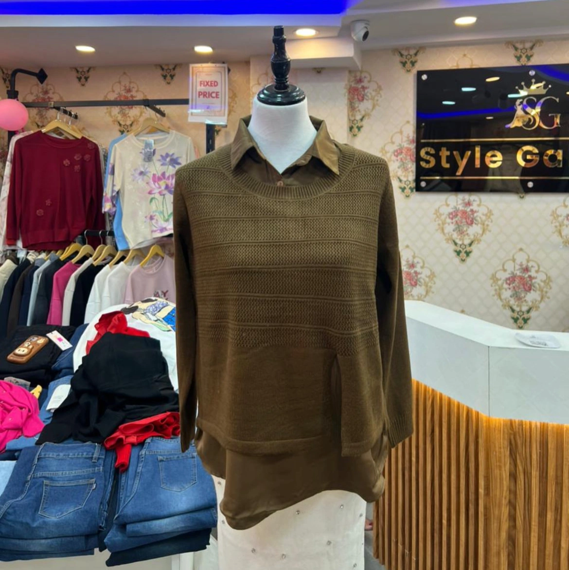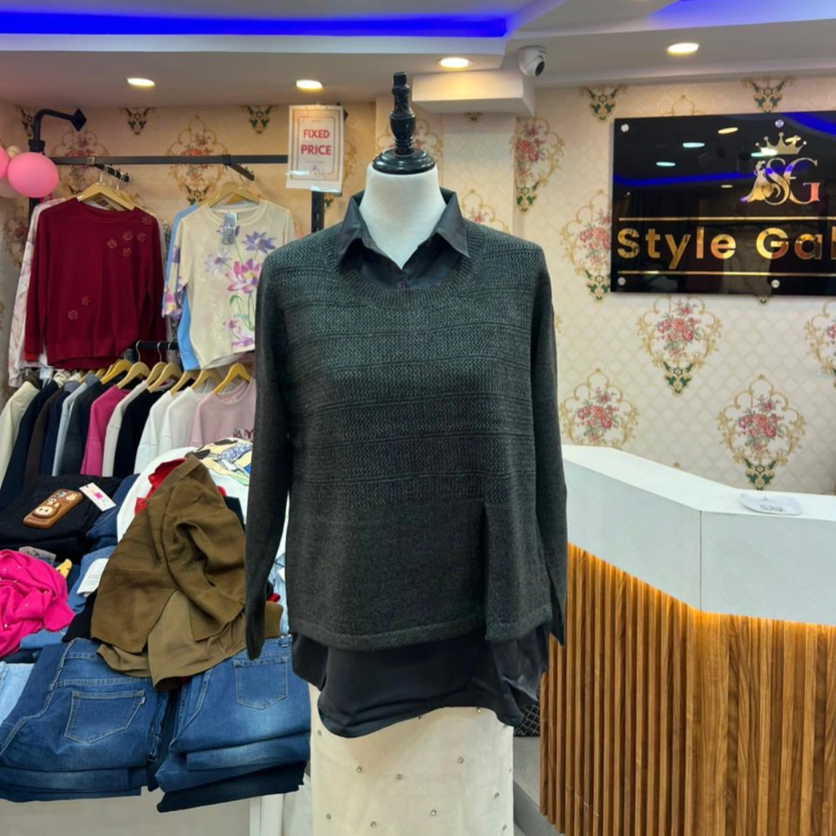Stay cozy and effortlessly stylish with this layered sweater featuring a built-in shirt design. The soft knit outer and shirt-style inner give a chic layered look without the bulk. Perfect for casual days, office wear, or outings, this piece combines warmth, comfort, and modern elegance in one.