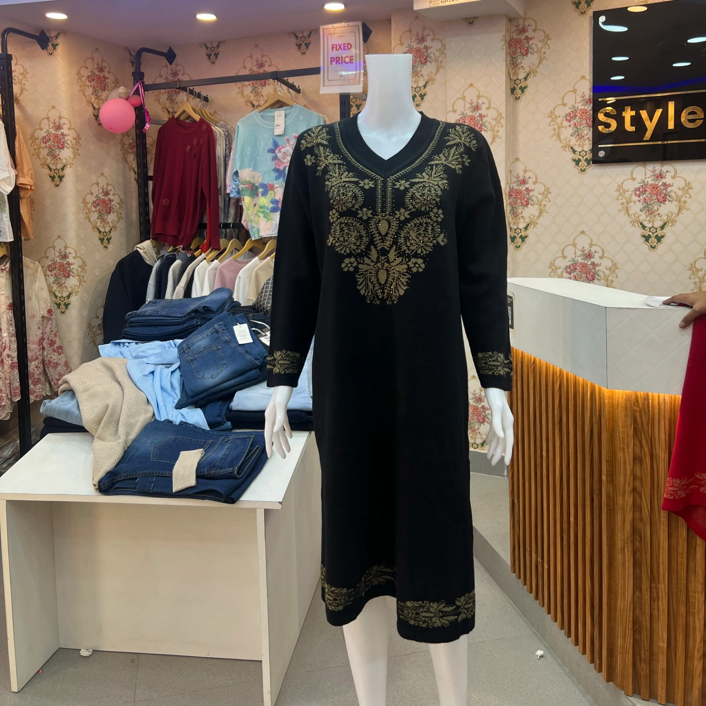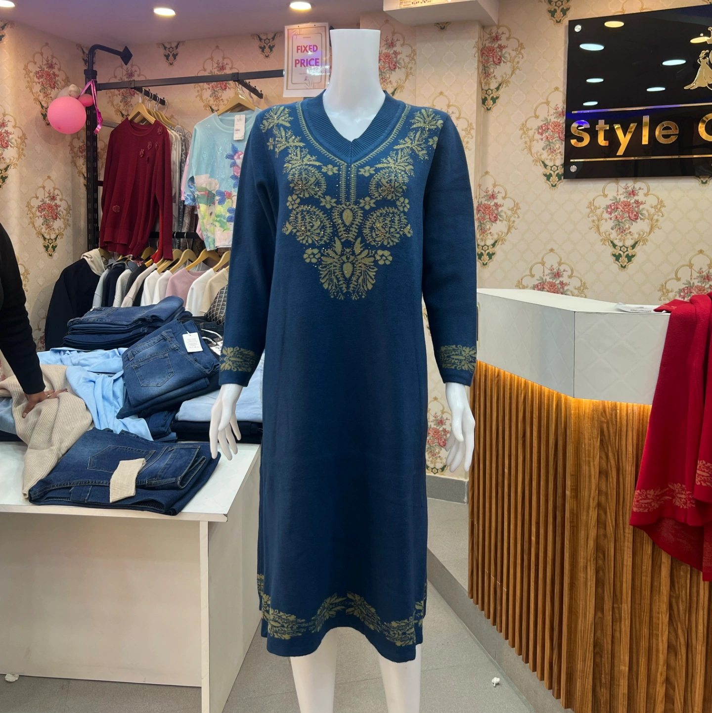 Categories: Long Floral Woolen Dress