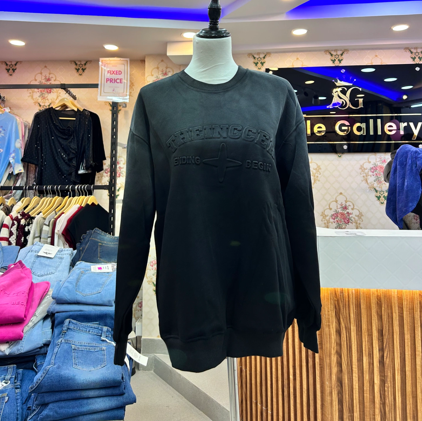 The perfect oversized crewneck has arrived. Featuring unique embossed text and a powerful design element. Available in classic black and vibrant hot pink.
