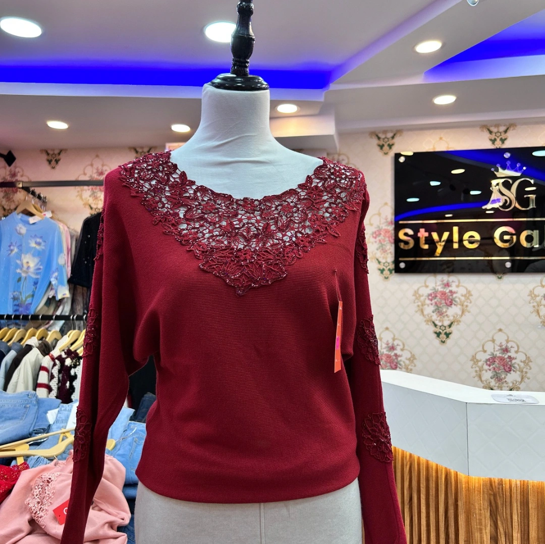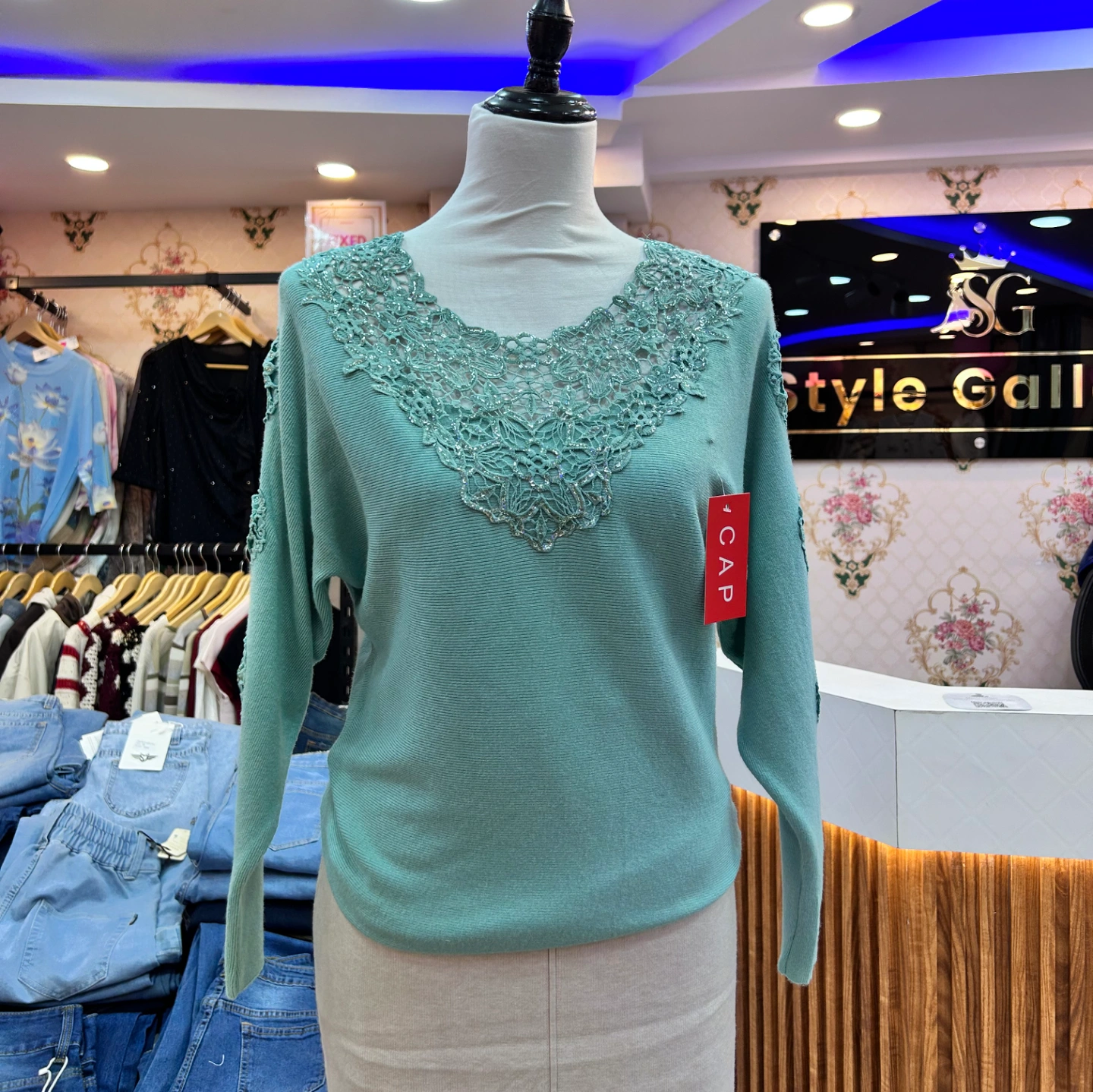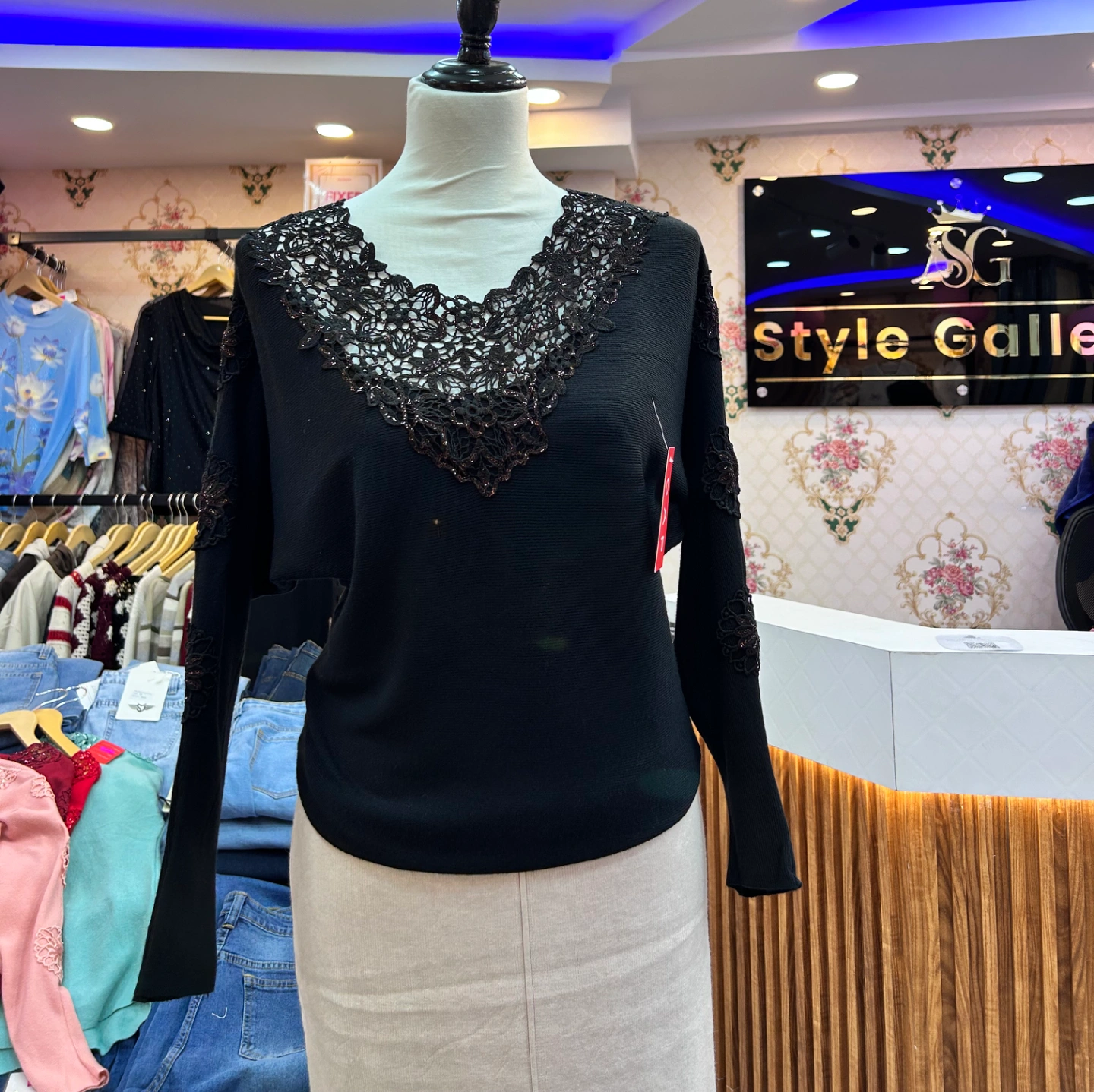 Soft and cozy pashmina top featuring a delicate lace print along the neckline, perfect for adding a touch of elegance to your everyday comfort. Lightweight yet warm, ideal for both casual and dressy looks.