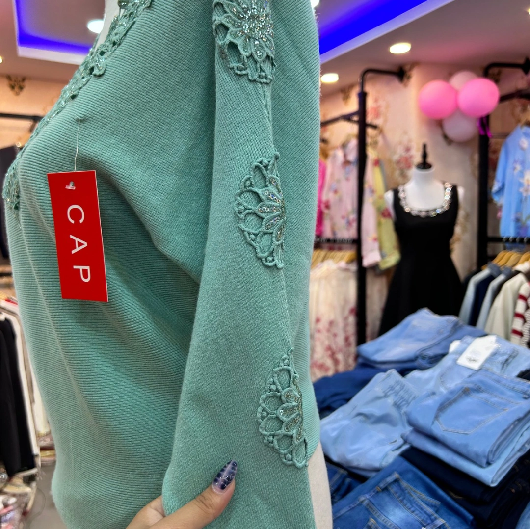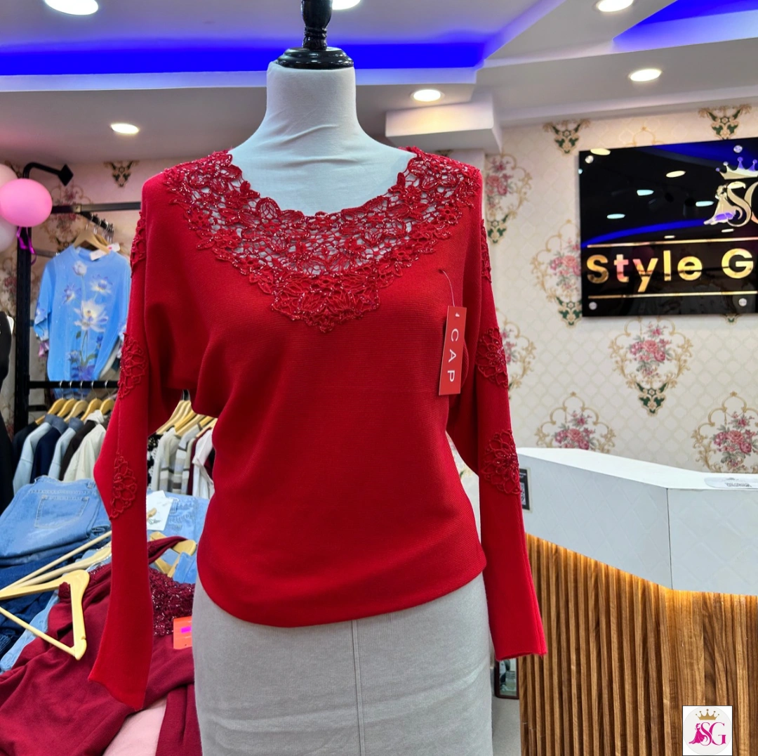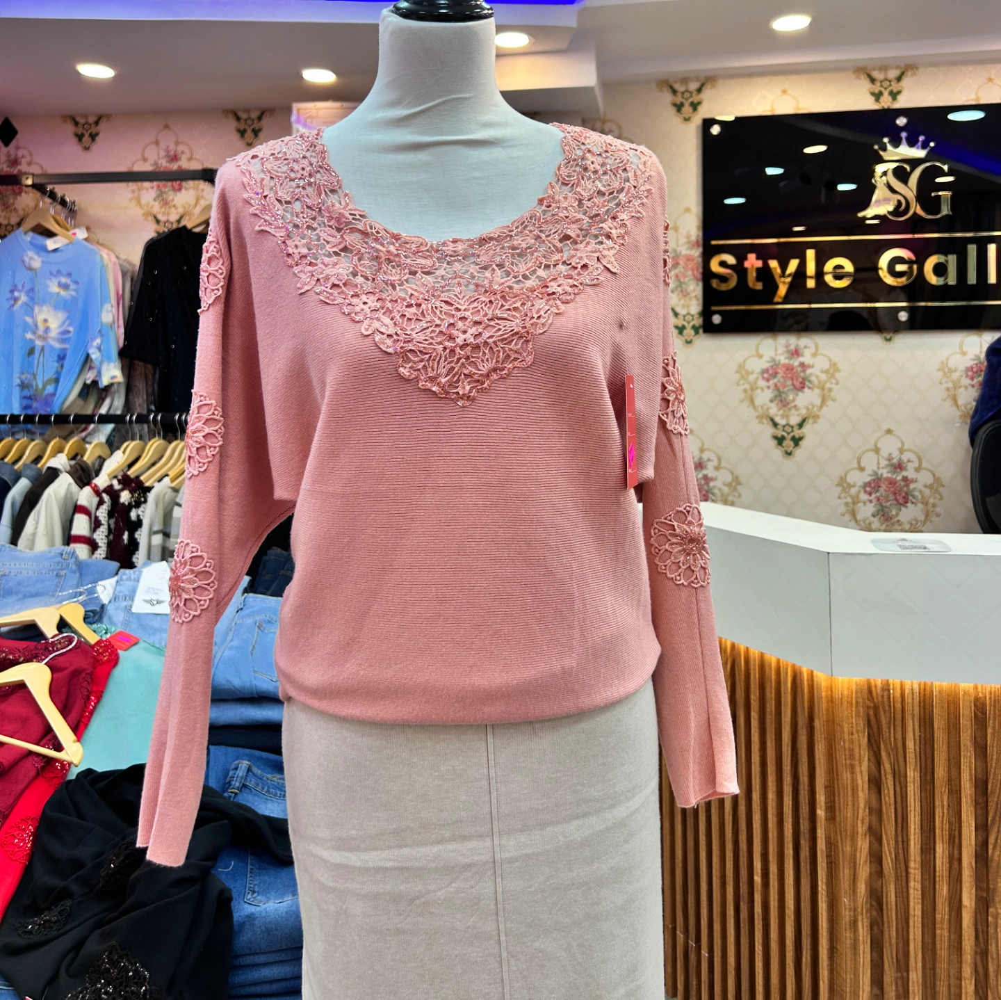 Soft and cozy pashmina top featuring a delicate lace print along the neckline, perfect for adding a touch of elegance to your everyday comfort. Lightweight yet warm, ideal for both casual and dressy looks.