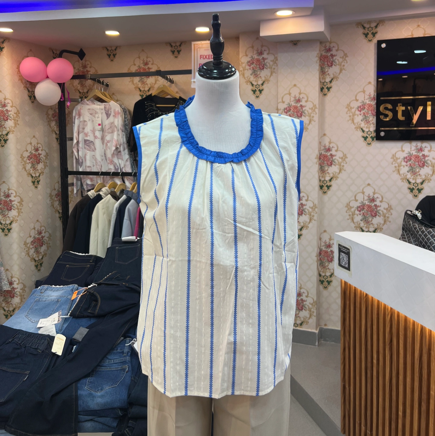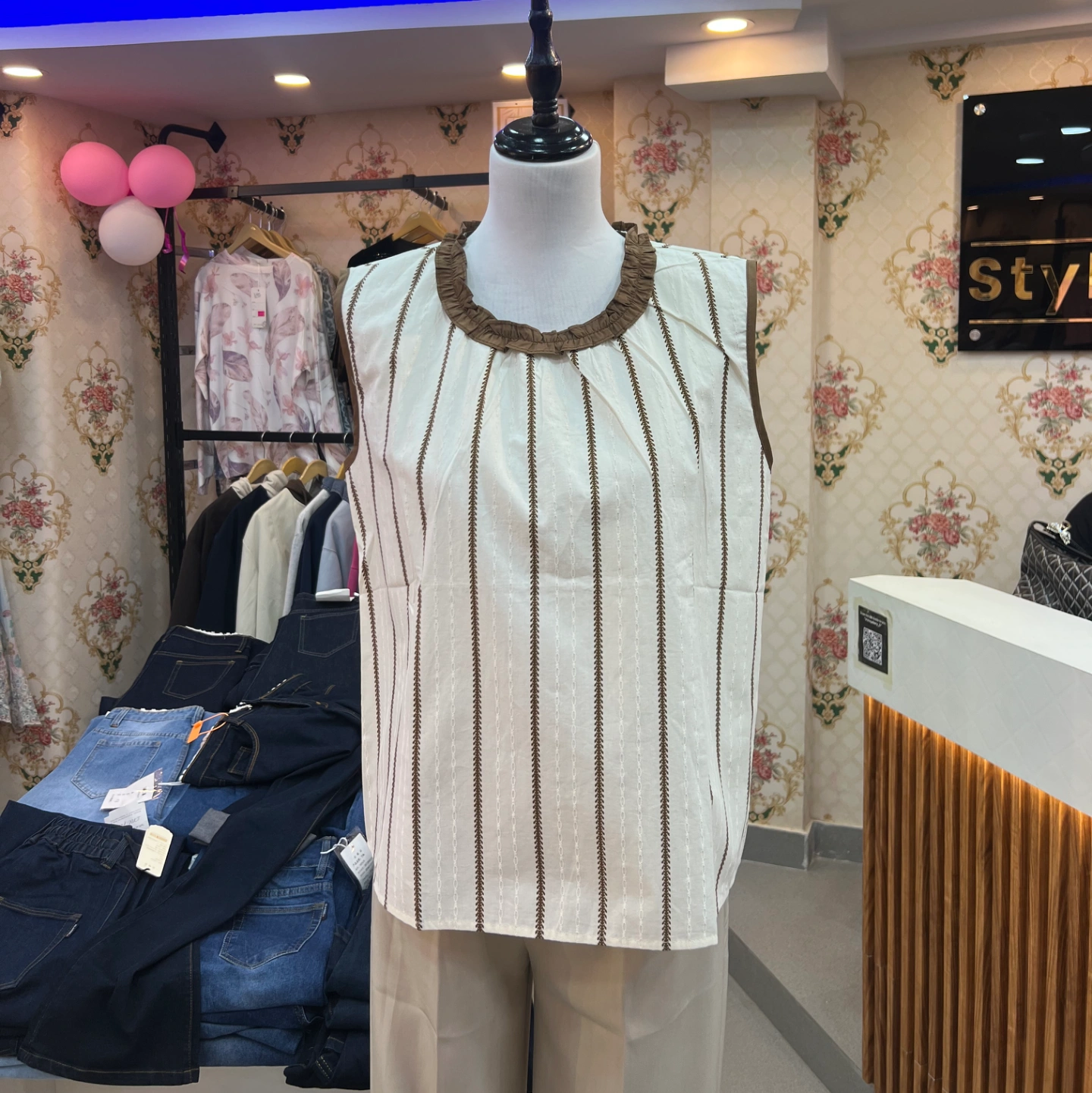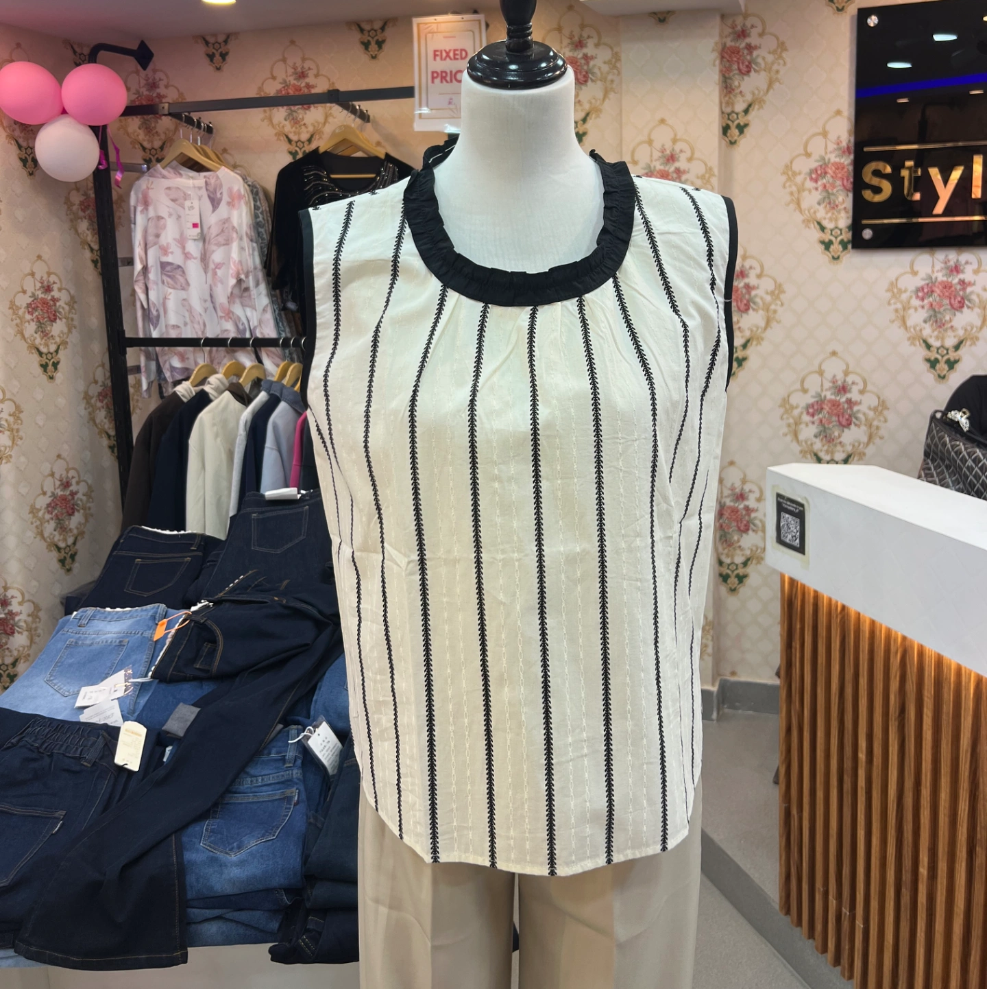 This sleeveless top features a smooth inner lining for a comfortable and flattering fit. Crafted from soft, lightweight fabric, it drapes beautifully on the body while keeping you cool and stylish. The simple yet elegant design makes it versatile enough to pair with jeans, skirts, or trousers. Perfect for casual days, office wear, or layering under jackets, a timeless essential for every wardrobe.