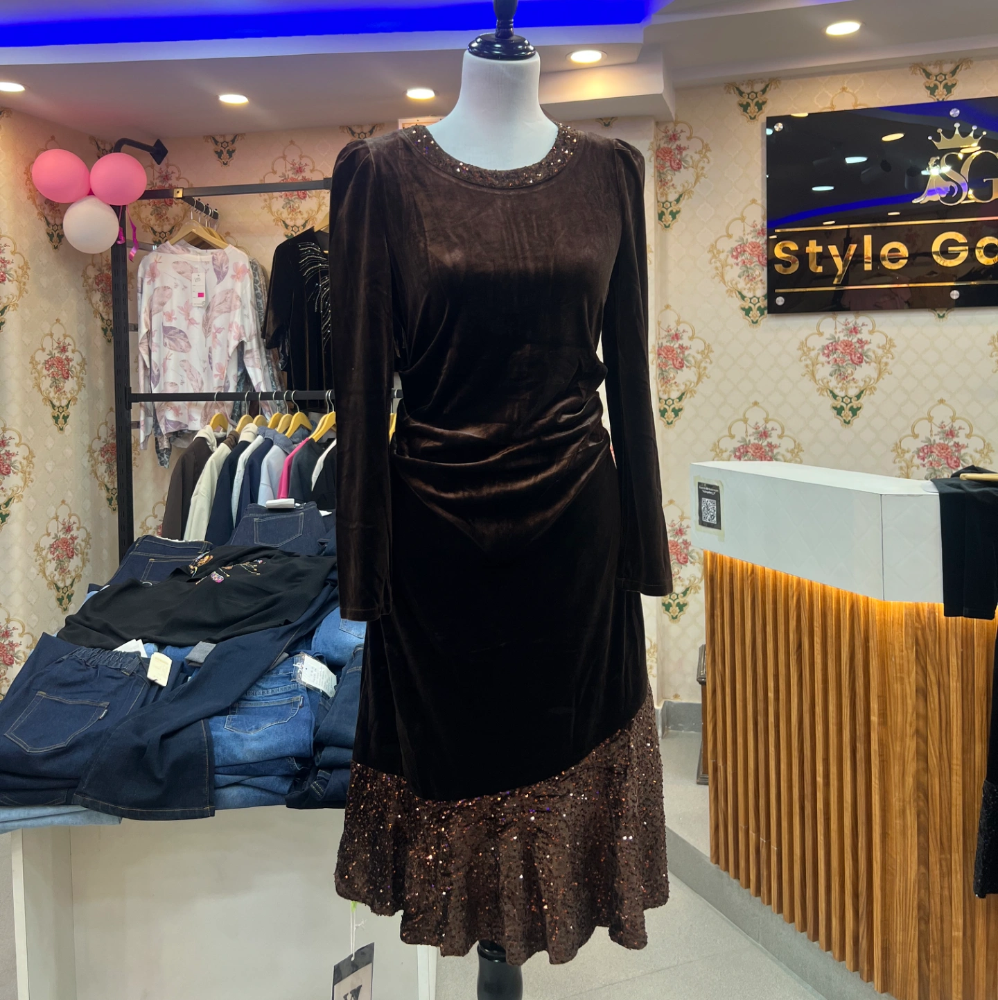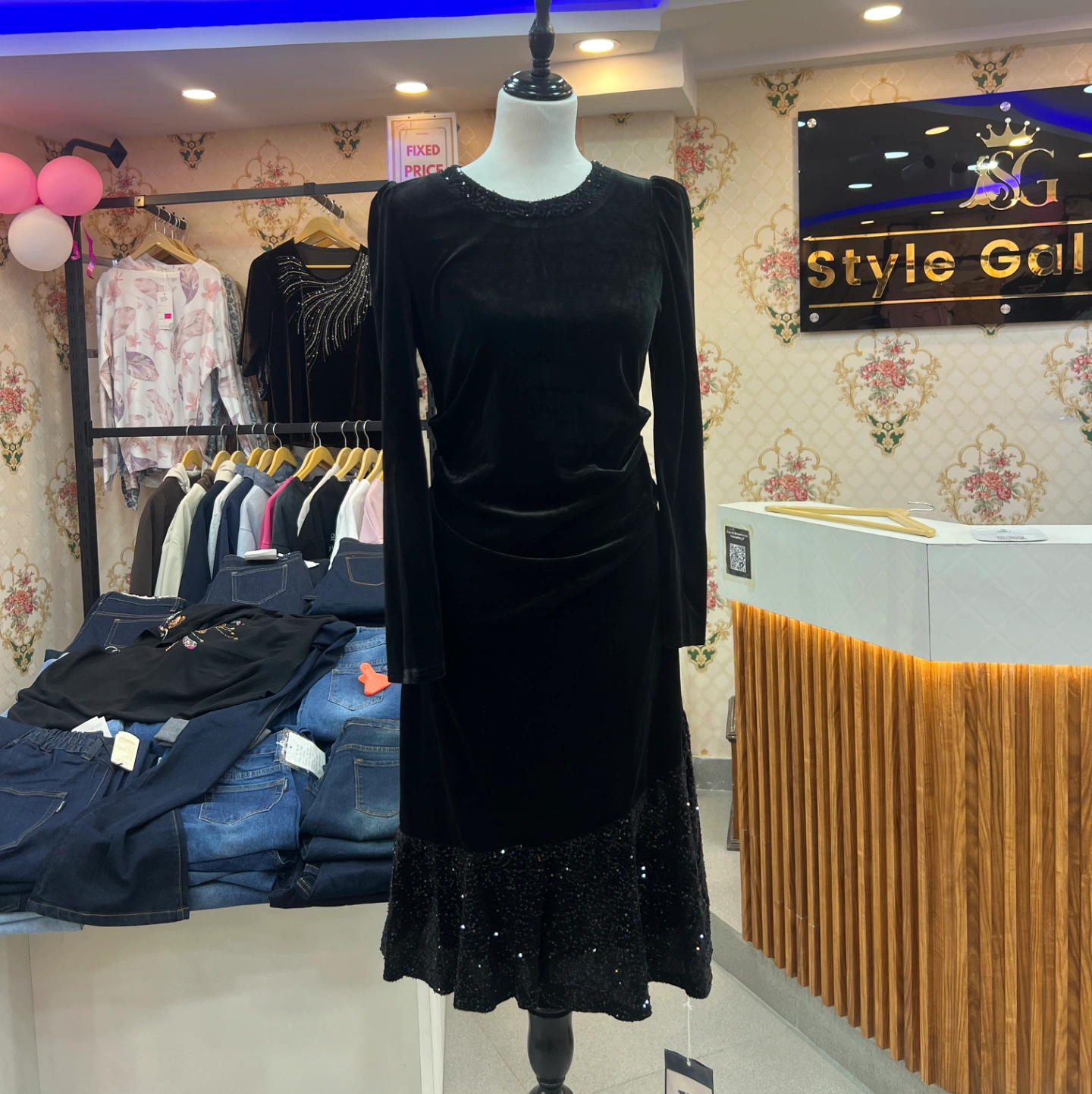 This luxurious velvet dress exudes elegance and sophistication. Crafted from rich, soft velvet fabric, it offers a smooth, comfortable fit while giving a subtle sheen that catches the light beautifully. Its timeless design makes it perfect for parties, evening events, or special occasions, adding a touch of glamour to any wardrobe. Combining style and comfort, this velvet dress is a must-have for those looking to make a graceful statement.