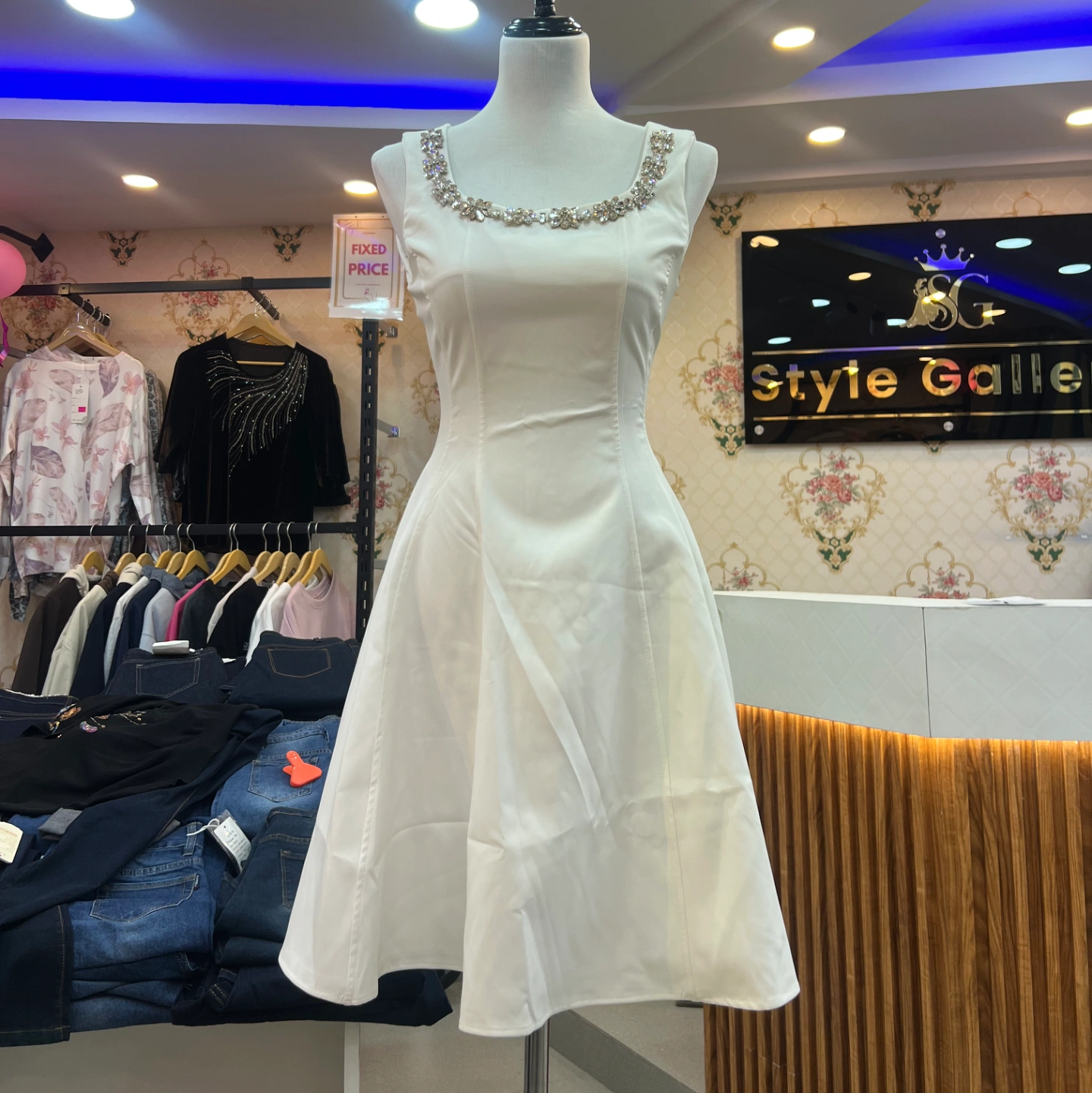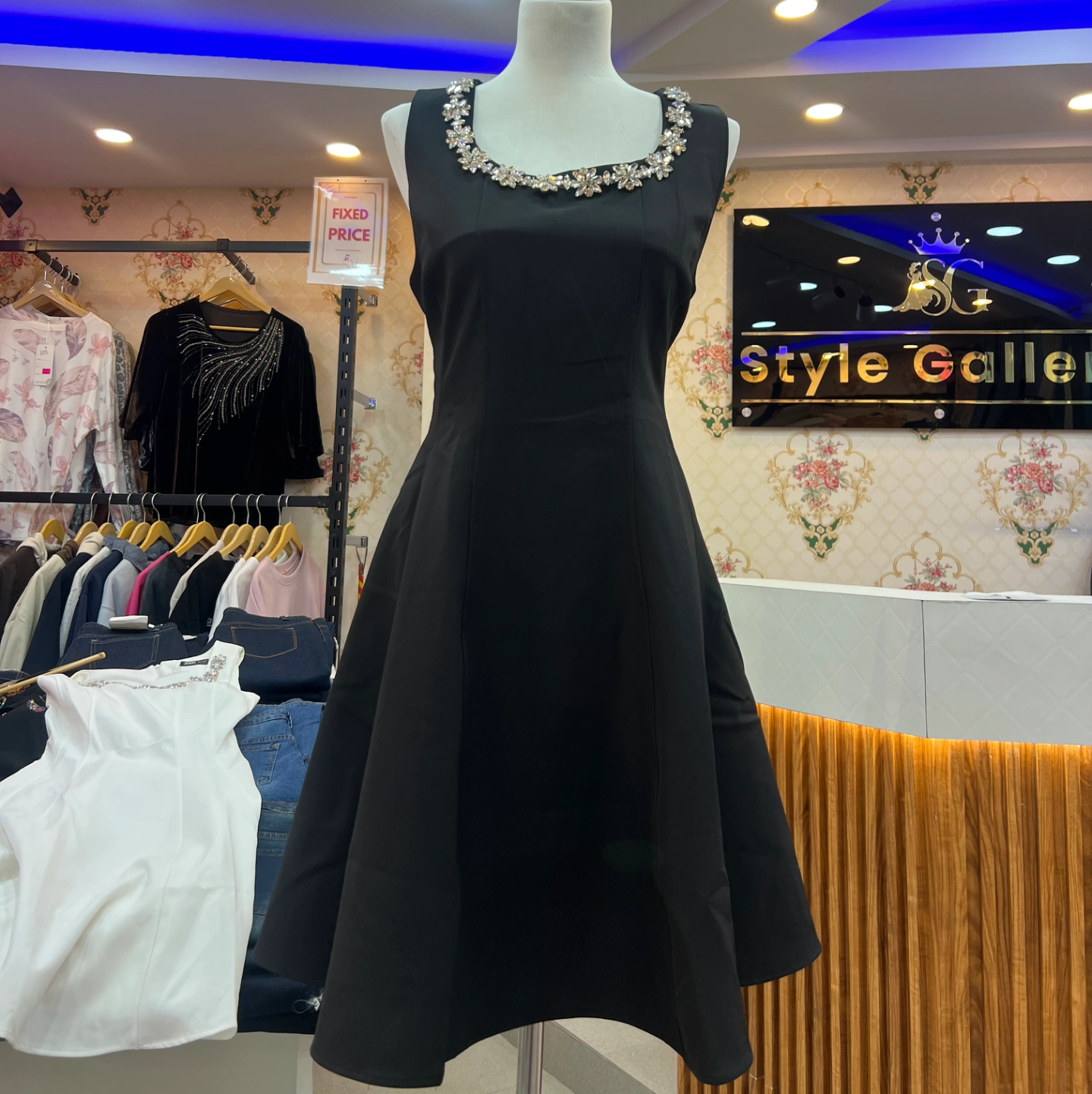 • Elegant Zara dress with a sparkling rhinestone neckline